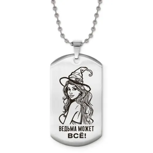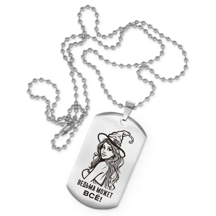 Размеры и комплектация: Размер жетона 50х28 мм. В комплекте регулируемая цепочка. Упаковка: прозрачный пакет.