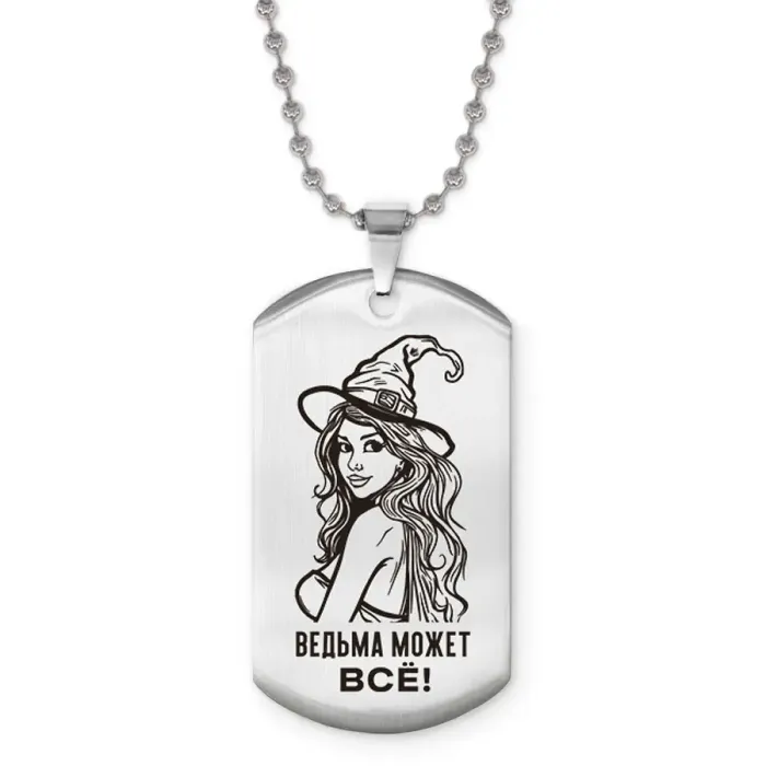 Сувенирный жетон на цепочке из нержавеющей стали с гравировкой.