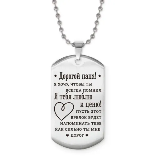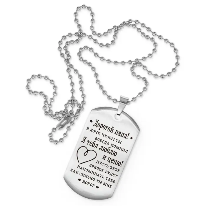 Жетон на цепочке «Дорогой папа» — сувенир из полированной нержавеющей стали с гравировкой.