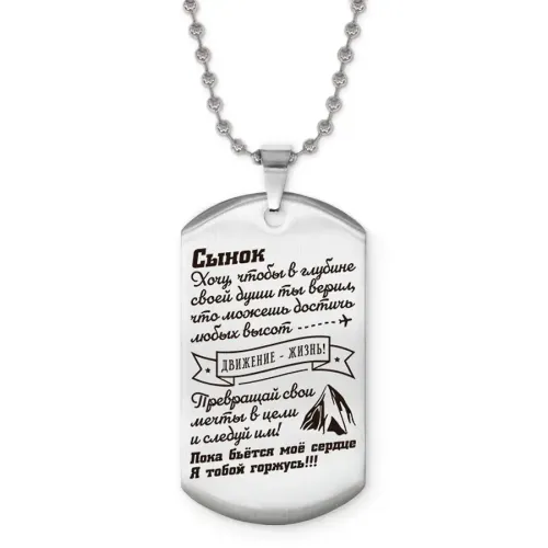 Жетон на цепочке Сынок хочу чтобы ты верил ACZ2-769