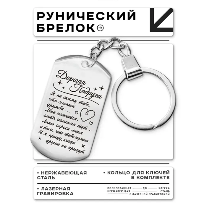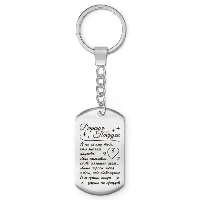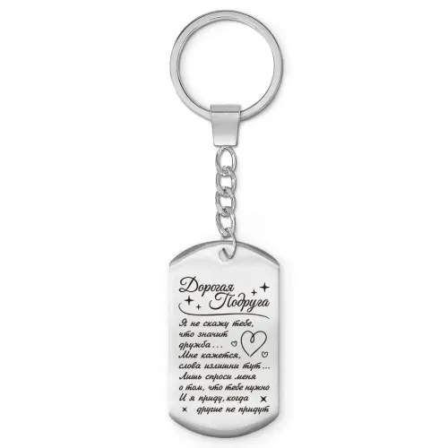 Брелок-жетон из полированной нержавеющей стали с гравировкой.