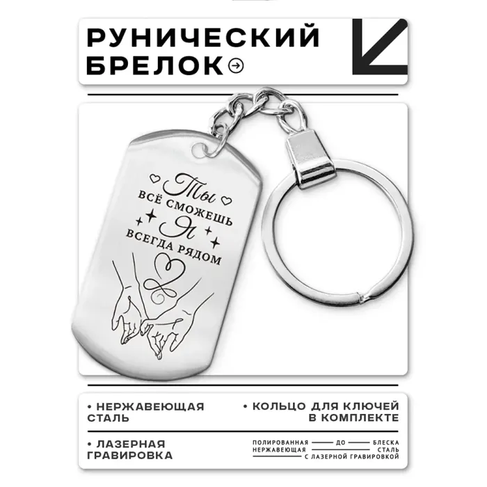 Брелок-жетон из полированной нержавеющей стали с гравировкой.