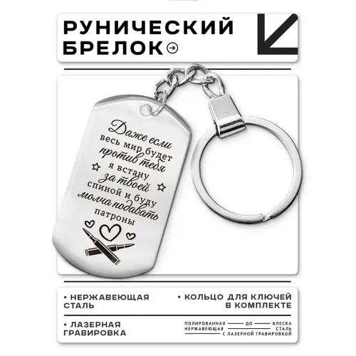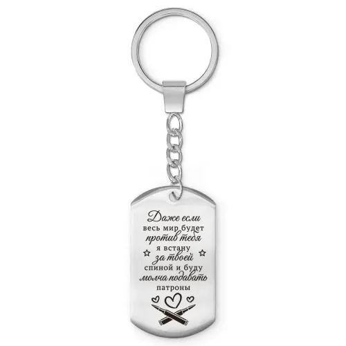 Брелок-жетон из полированной нержавеющей стали с гравировкой.