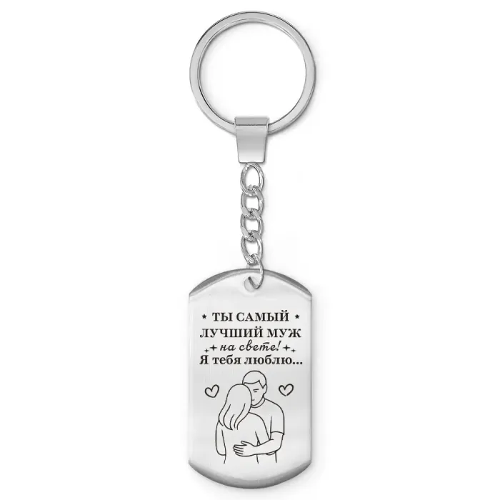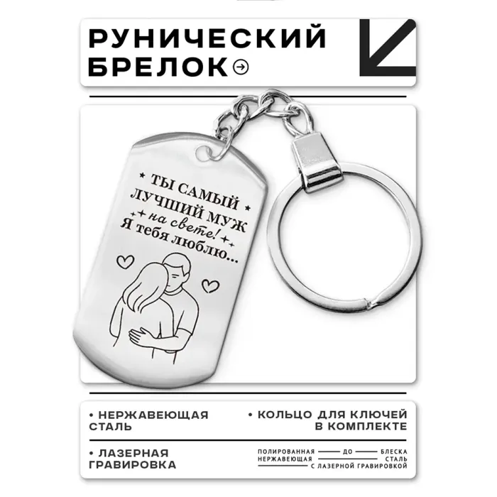 Брелок-жетон из полированной нержавеющей стали с гравировкой.