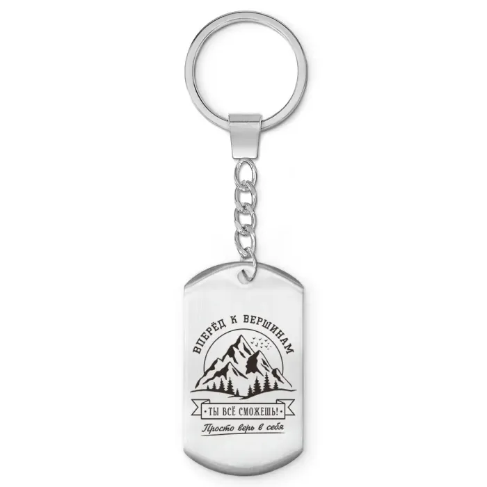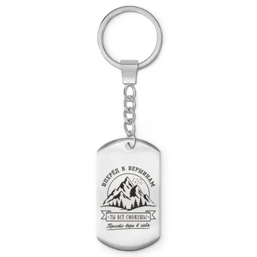 Брелок-жетон из полированной нержавеющей стали с гравировкой.