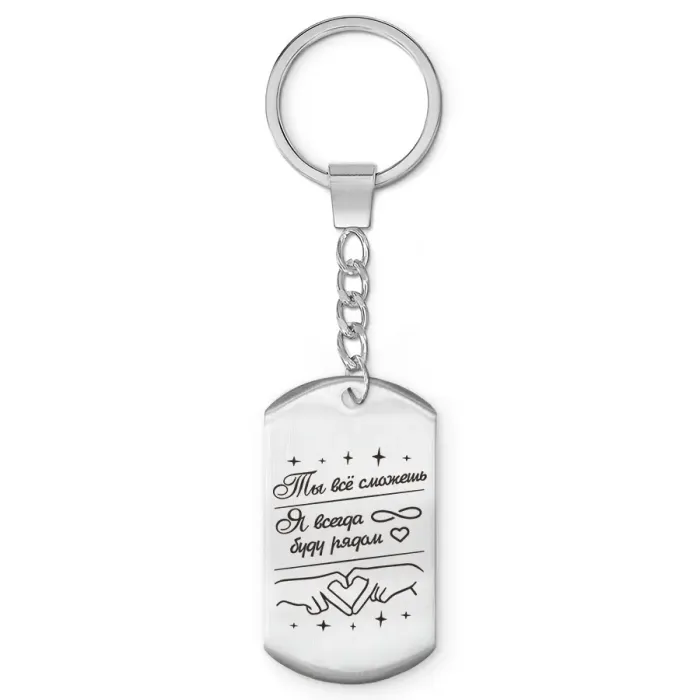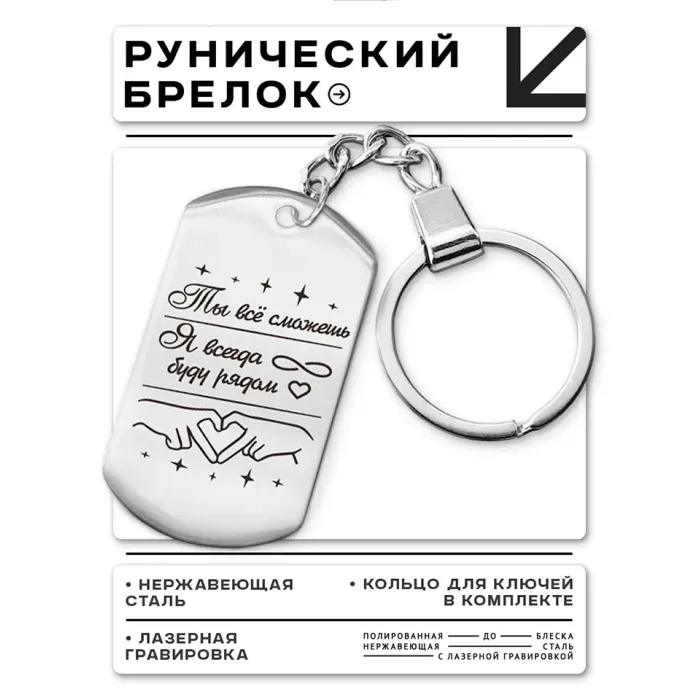 Брелок-жетон из полированной нержавеющей стали с гравировкой.