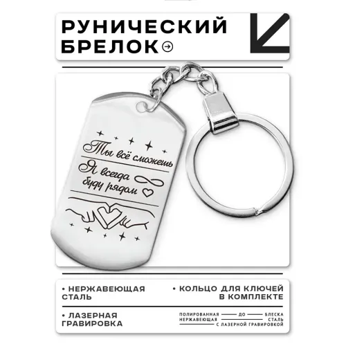 Размеры и комплектация: Размеры 50х28 мм. В комплекте кольцо на цепочке. Упаковка — прозрачный пакет.