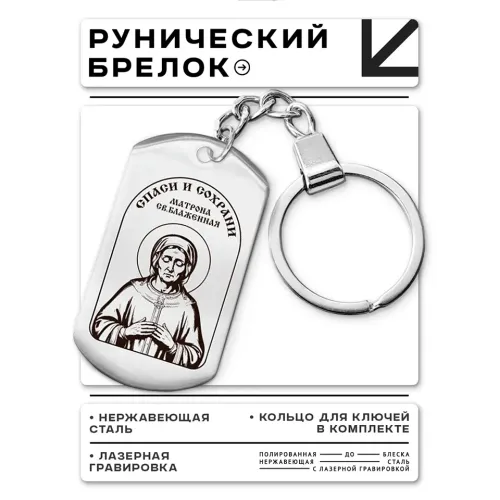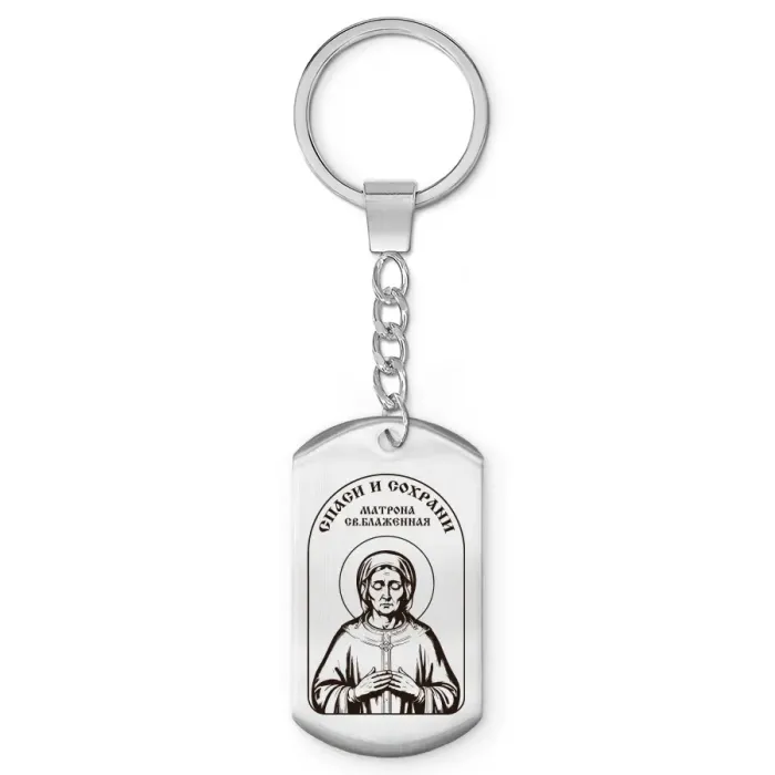 Брелок-жетон с изображением Матроны блаженной. Изготовлен из полированной нержавеющей стали, имеет гравировку.