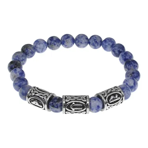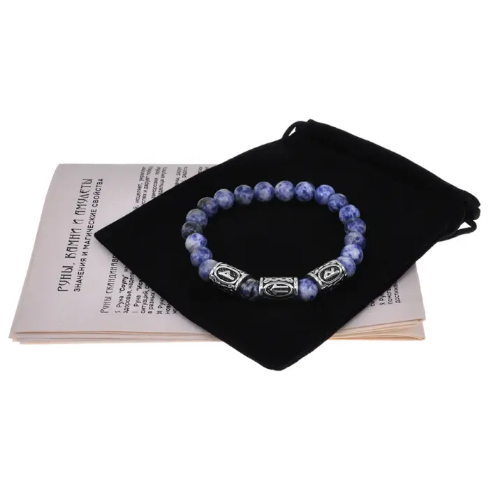 Славянский стрейч-браслет ручной работы из натурального камня содалит и рунических бусин из нержавеющей стали.