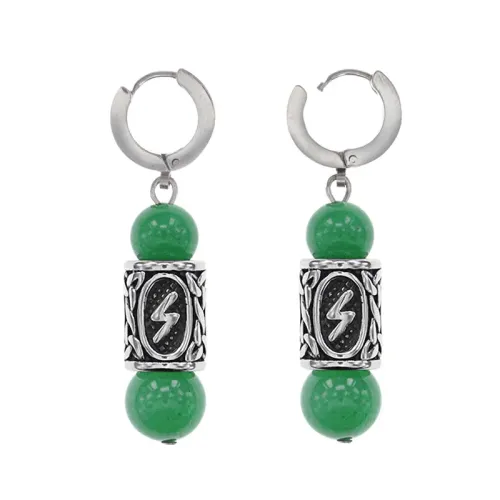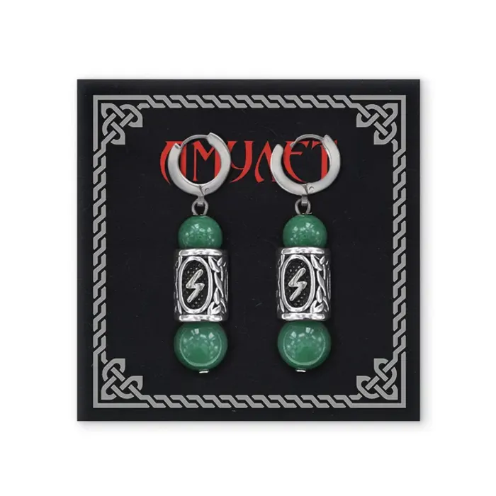 Серьги-амулеты с руной из нержавеющей стали Соулу, Нефрит SERX01-02