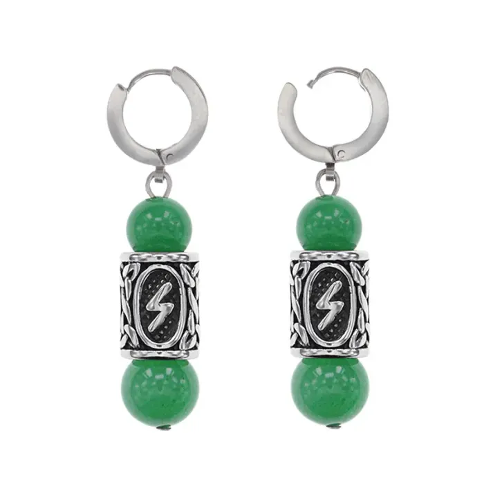 Серьги-амулеты с руническими бусинами Соулу из нержавеющей стали и натурального нефрита.