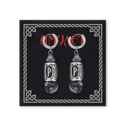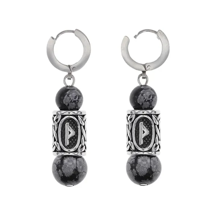 Серьги-амулеты с руническими бусинами Турисаз из нержавеющей стали и натурального обсидиана.