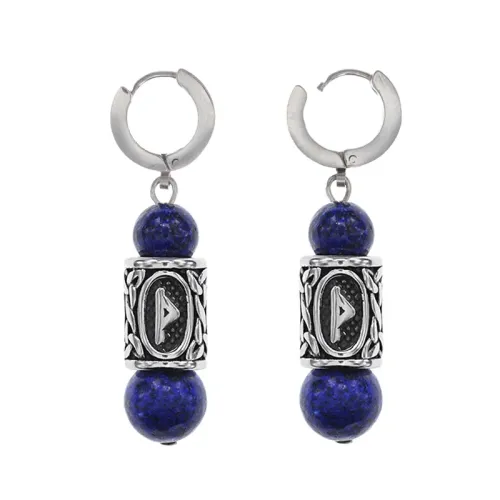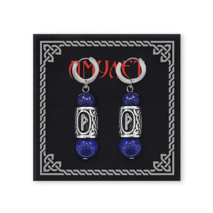 Серьги-амулеты с руной из нержавеющей стали Турисаз, Лазурит SERX01-18