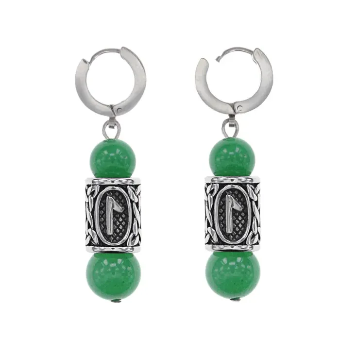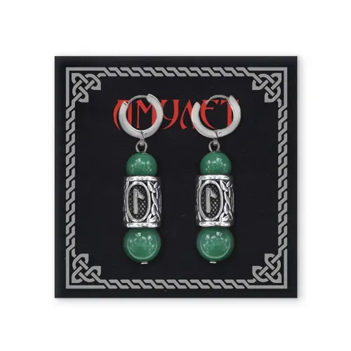 Серьги-амулеты с руническими бусинами из нержавеющей стали и натурального нефрита.