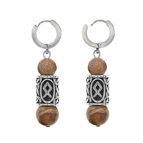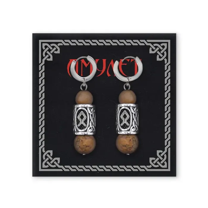 Серьги-амулеты с руной из нержавеющей стали Одал, Яшма песочная SERX01-24