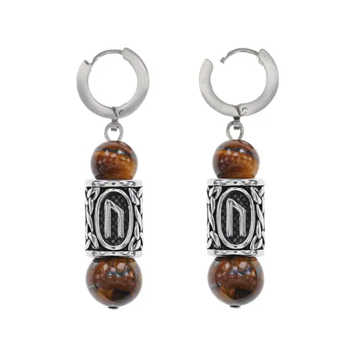 Серьги-амулеты с руной из нерж. стали Уруз, Тигровый глаз SERX01-25