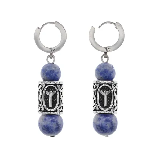 Серьги-амулеты с руной из нержавеющей стали Альгиз, Содалит SERX01-31