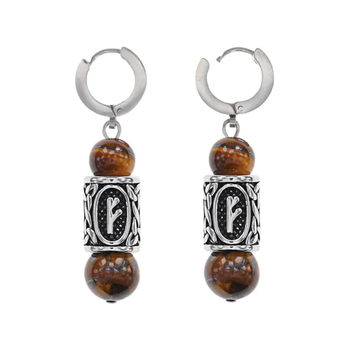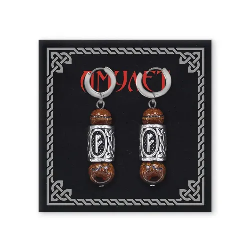 Серьги-амулеты с руной из нерж.стали Феху, Тигровый глаз SERX01-34