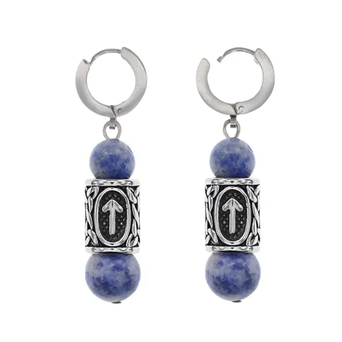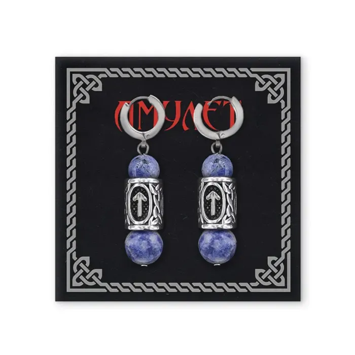 Серьги-амулеты с руной из нержавеющей стали Тейваз, Содалит SERX01-40