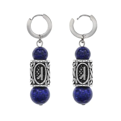 Серьги-амулеты с руной из нерж.стали Алатырь, Лазурит SERX02-06