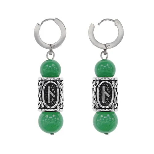 Серьги-амулеты с руной из нержавеющей стали Нужда, Нефрит SERX02-10
