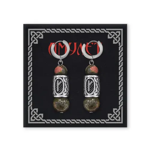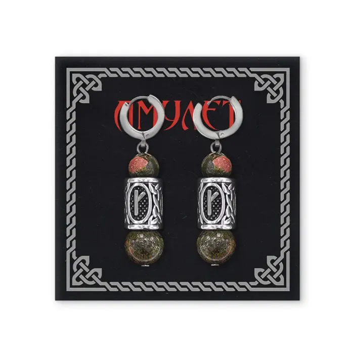 Серьги-амулеты с руной из нержавеющей стали Крада, Унакит SERX02-11