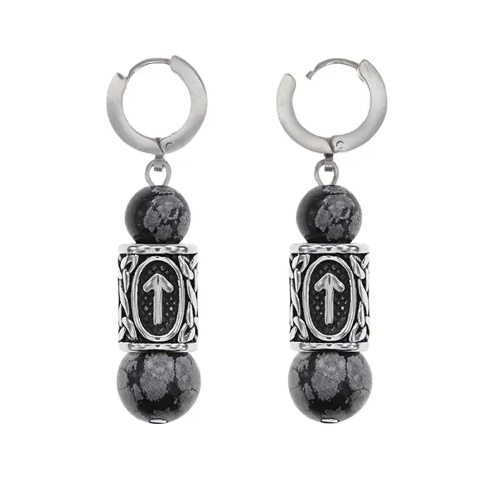 Серьги-амулеты с руническими бусинами из нержавеющей стали и натурального обсидиана.
