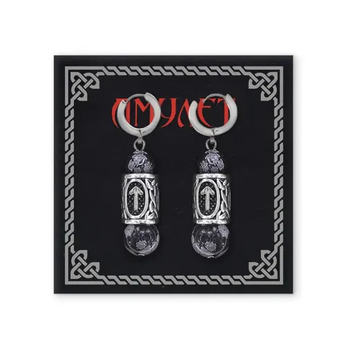 Серьги-амулеты с руной из нержавеющей стали Треба, Обсидиан SERX02-14