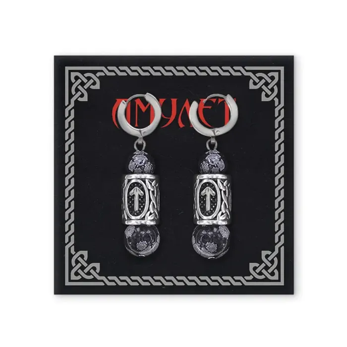 Размеры и комплектация: Серьги, двухсторонний бумажный вкладыш с описанием руны. Упаковка — прозрачный полипропиленовый пакет с этикеткой.