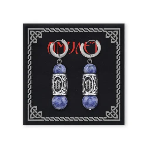Серьги-амулеты с руной из нержавеющей стали Ветер, Содалит SERX02-17