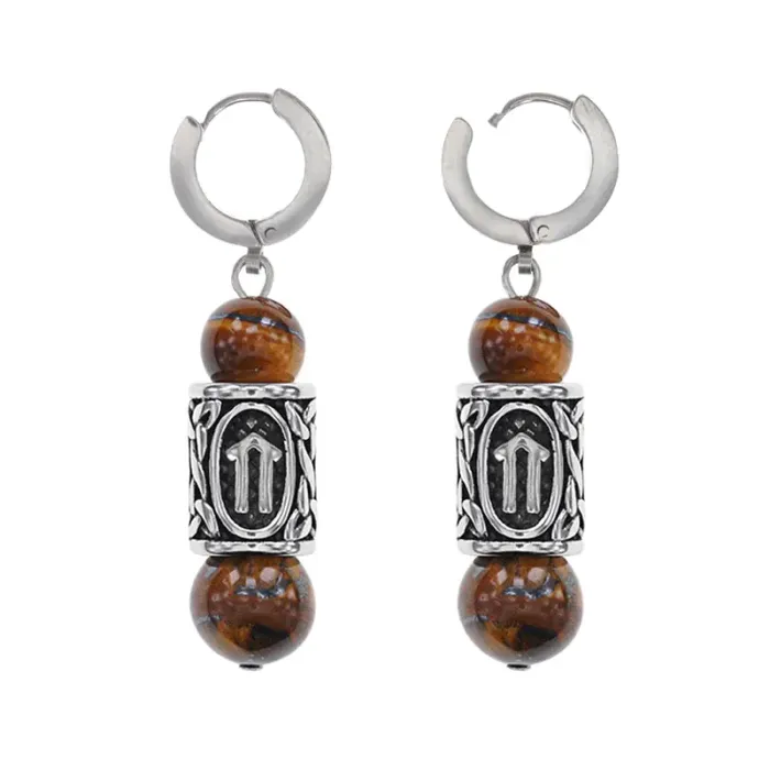 Серьги-амулеты с руной из нержавеющей стали Ветер, Тигровый глаз SERX02-18