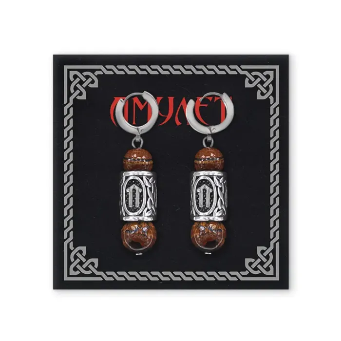 Размеры и комплектация: Серьги, двухсторонний вкладыш «Амулет» с описанием руны. Упаковка — прозрачный полипропиленовый пакет с этикеткой.
