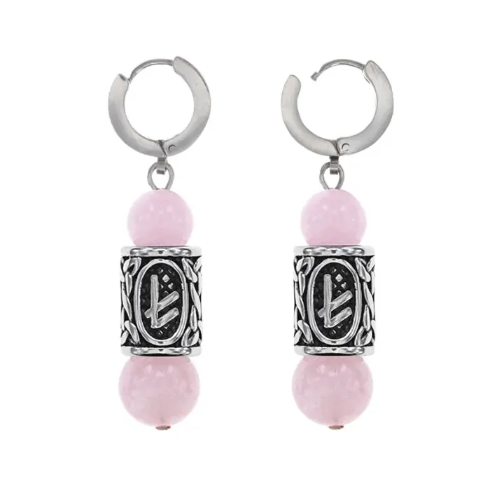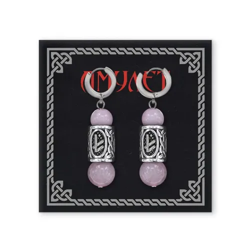 Серьги-амулеты с руной из нержавеющей стали Берегиня, Розовый кварц SERX02-19