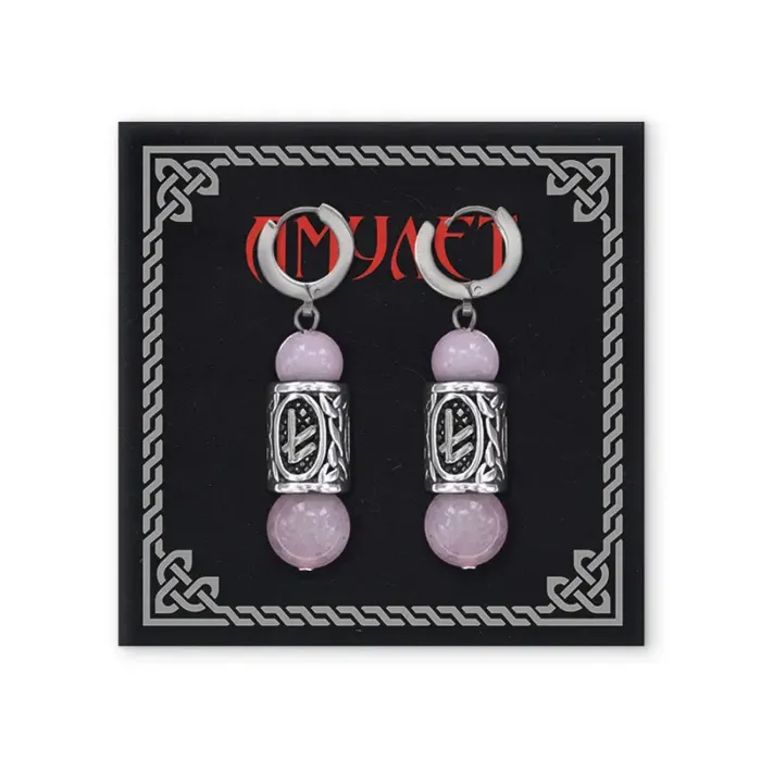 Размеры и комплектация: Диаметр бусин из розового кварца 8 и 10 мм. В комплекте серьги и двухсторонний бумажный вкладыш с описанием руны. Упаковка — прозрачный полипропиленовый пакет с этикеткой.