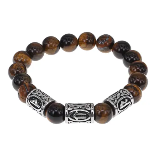 Славянский стрейч-браслет ручной работы из натурального камня тигровый глаз и рунических бусин из нержавеющей стали.