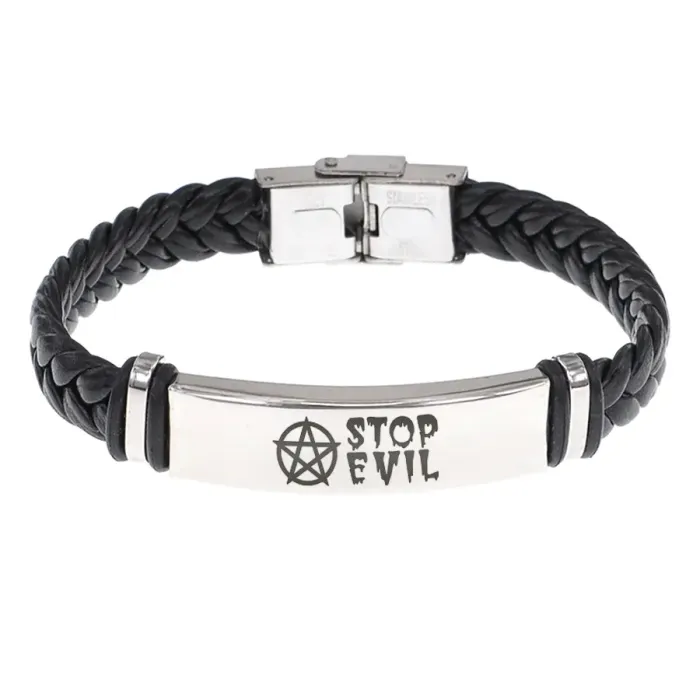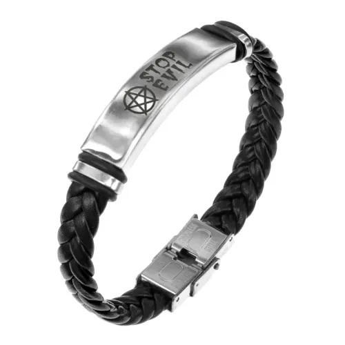 Материал и изготовление: Кожа, нержавеющая сталь. Плетёная структура, гравировка.