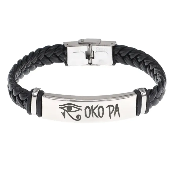 Кожаный браслет с гравировкой символа Око Ра.
