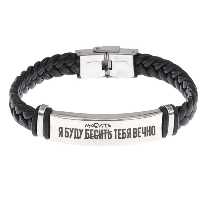 Кожаный браслет с гравировкой «Я буду любить тебя вечно».