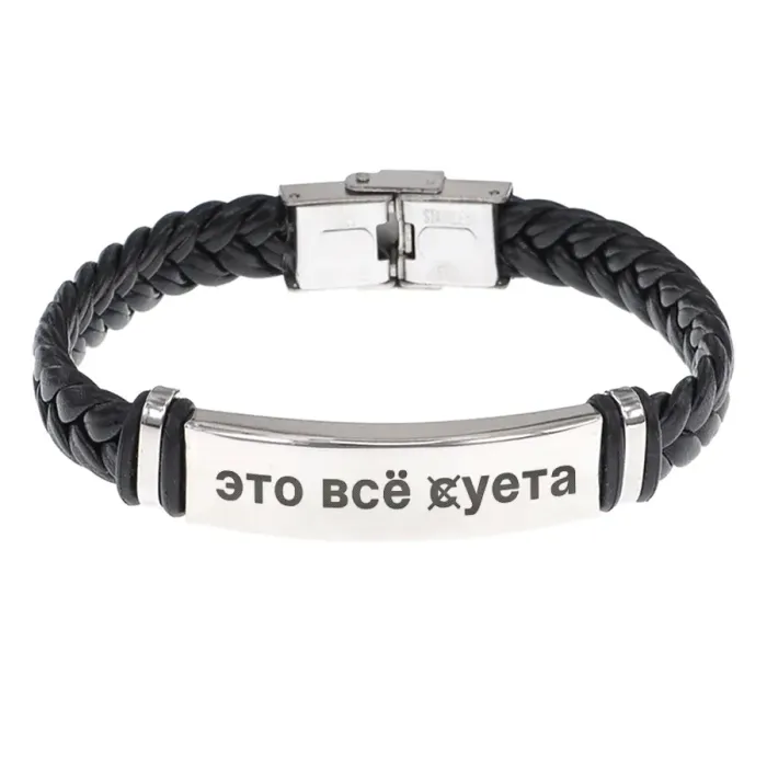 Кожаный браслет с плетением и гравировкой «Это всё суета».