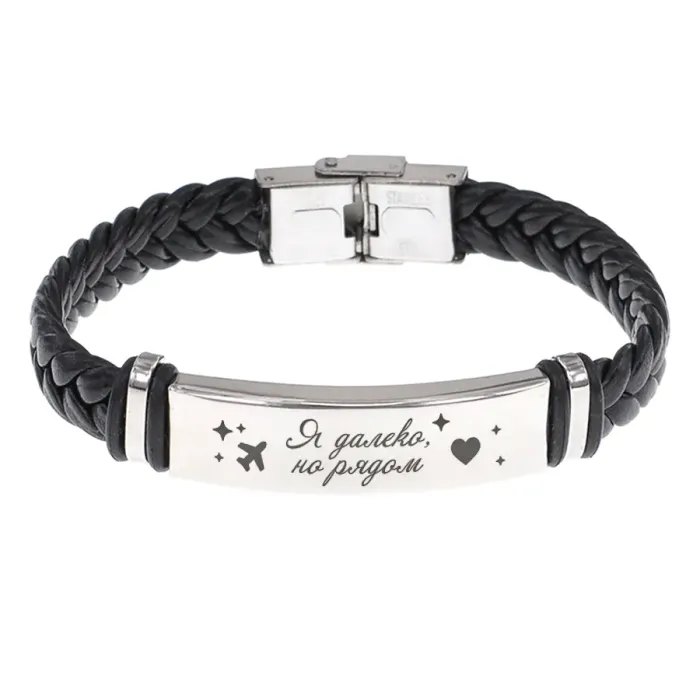 Кожаный браслет с гравировкой «Я далеко, но рядом».