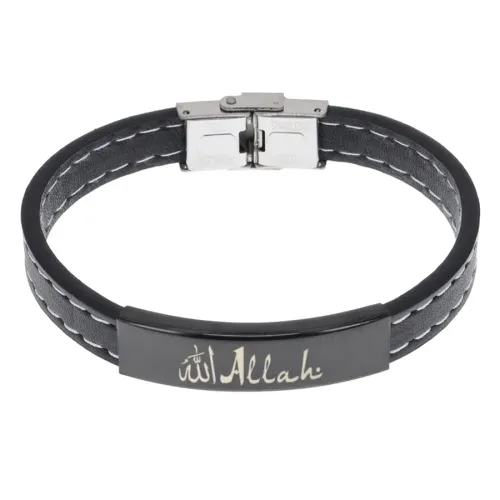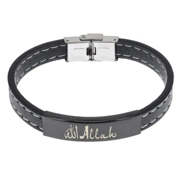 Кожаный браслет с гравировкой 'Allah' — сувенирный аксессуар из эко-кожи и нержавеющей стали.