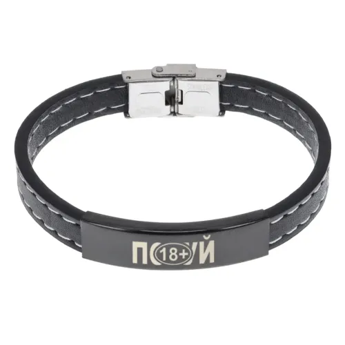 Кожаный браслет с гравировкой. Сувенирный аксессуар из эко-кожи и нержавеющей стали.