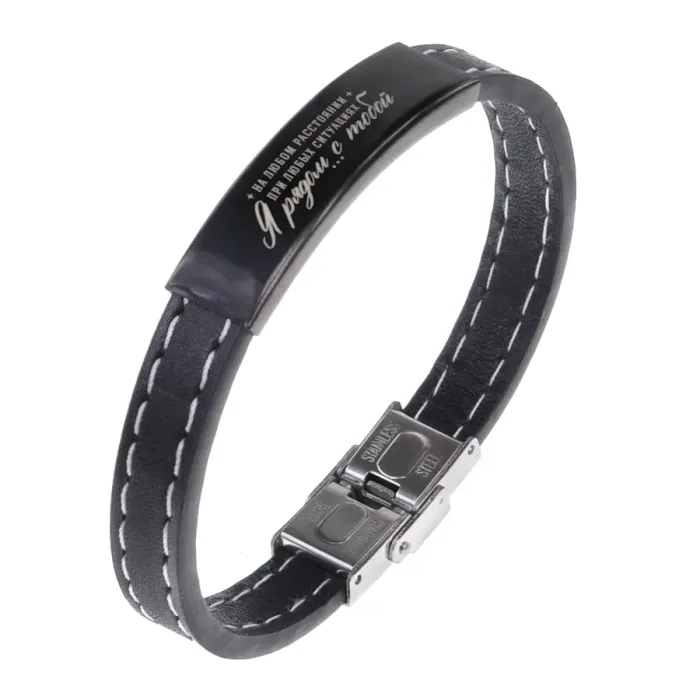 Кожаный браслет с гравировкой «Я рядом с тобой».