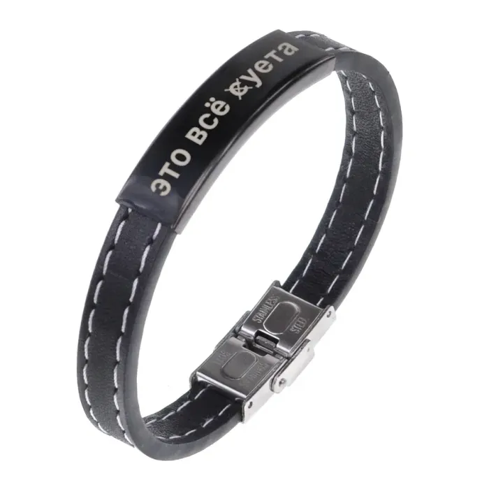 Материал и изготовление: Изготовлен из эко-кожи и нержавеющей стали. Имеет гравировку.