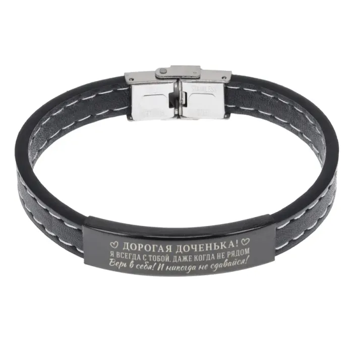 Кожаный браслет с гравировкой «Дорогая доченька» — сувенирный аксессуар.