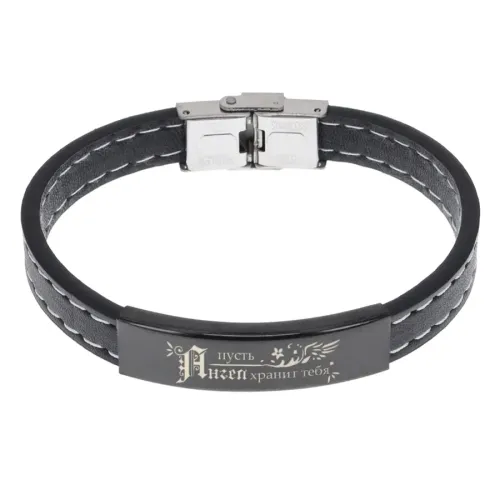 Кожаный браслет с гравировкой «Пусть ангел хранит тебя».