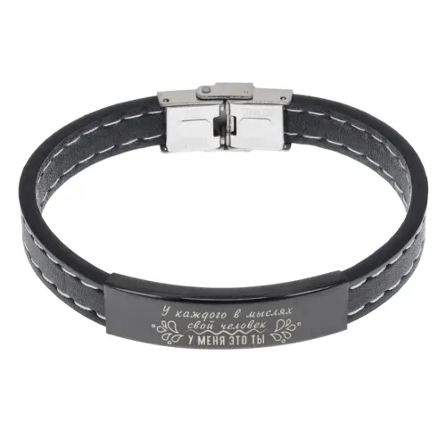 Кожаный браслет с гравировкой «В мыслях только ты».