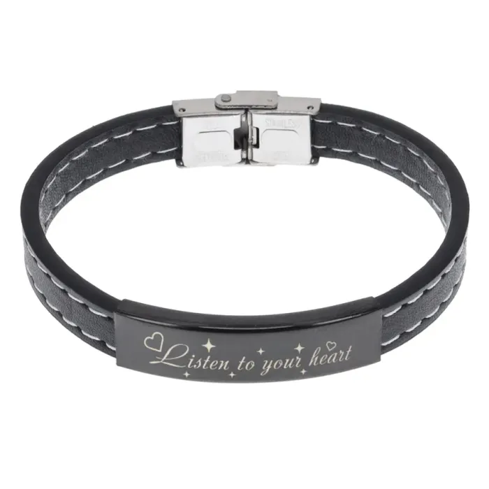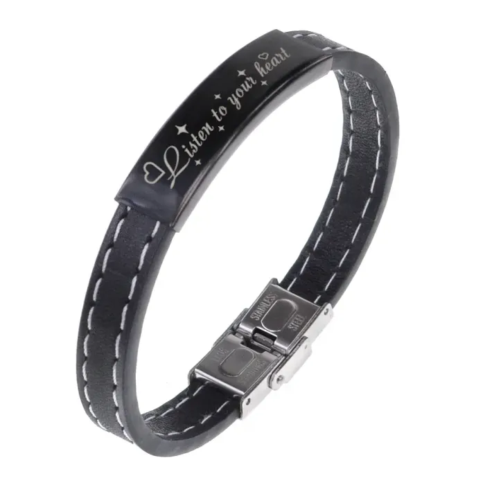 Кожаный браслет с гравировкой «Слушай своё сердце».