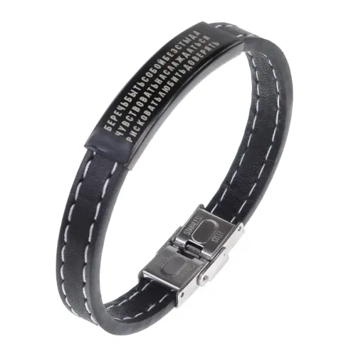 Кожаный браслет с гравировкой «Беречь, быть собой без стыда».