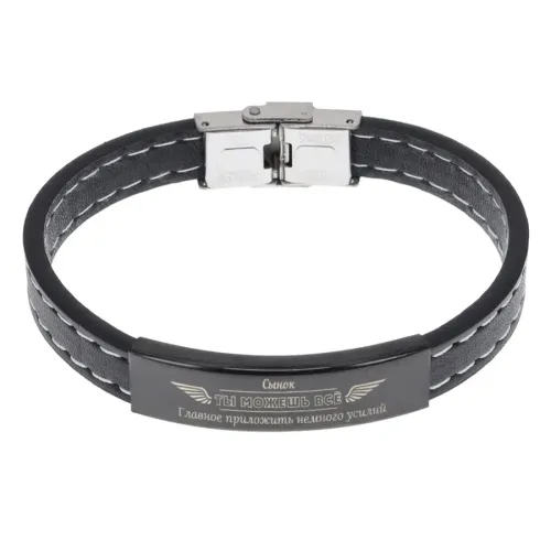 Кожаный браслет с гравировкой «Сынок, ты можешь все».